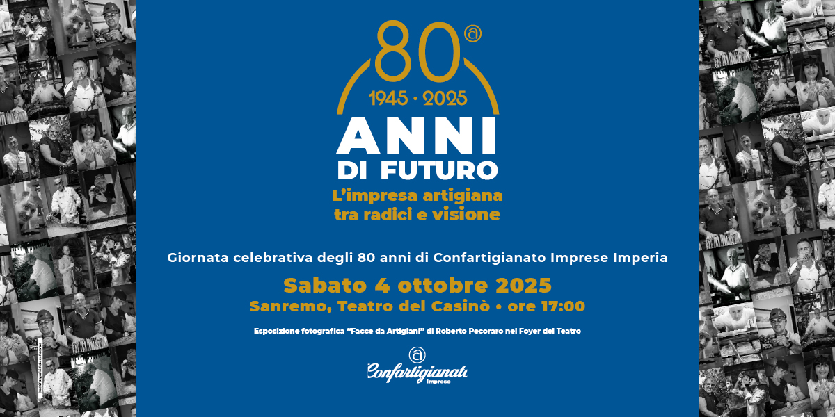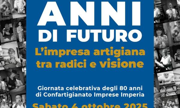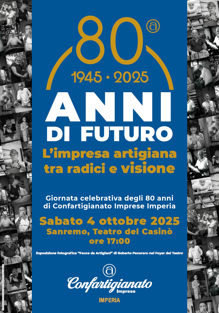 In occasione dell’80° anniversario di Confartigianato Imperia, in programma sabato 4 ottobre alle ore 17 presso il Teatro del Casinò di Sanremo, la celebrazione si concluderà con un momento di forte valore simbolico e intergenerazionale promosso da ANAP Confartigianato Imperia.
