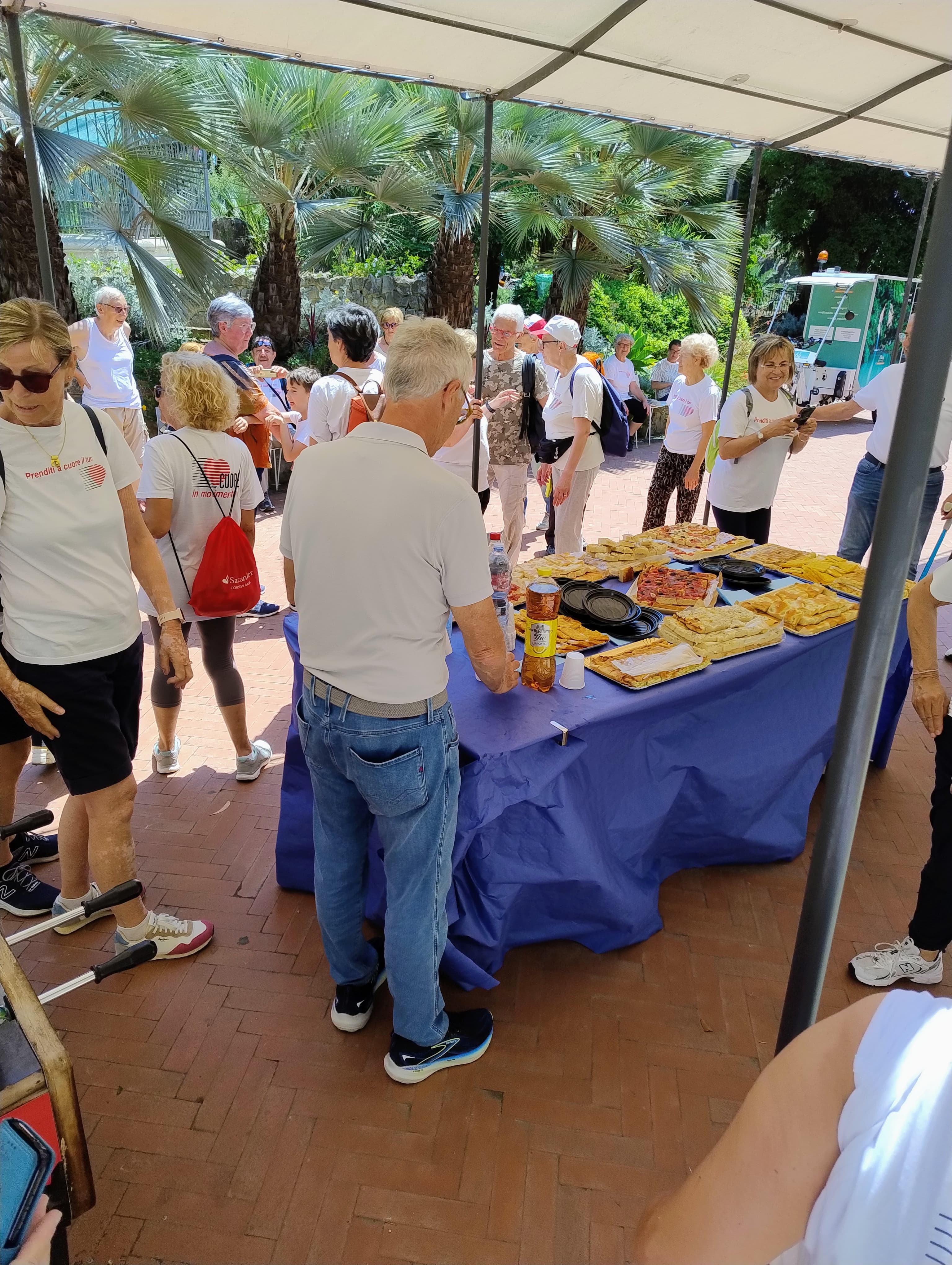 Al termine della camminata, i partecipanti sono stati accolti presso il Floriseum con un momento conviviale molto apprezzato, a base di focacce, torta verde e sardenaira, gentilmente preparate dal Panificio Pasta Madre – Il Fornaio di Sanremo.
